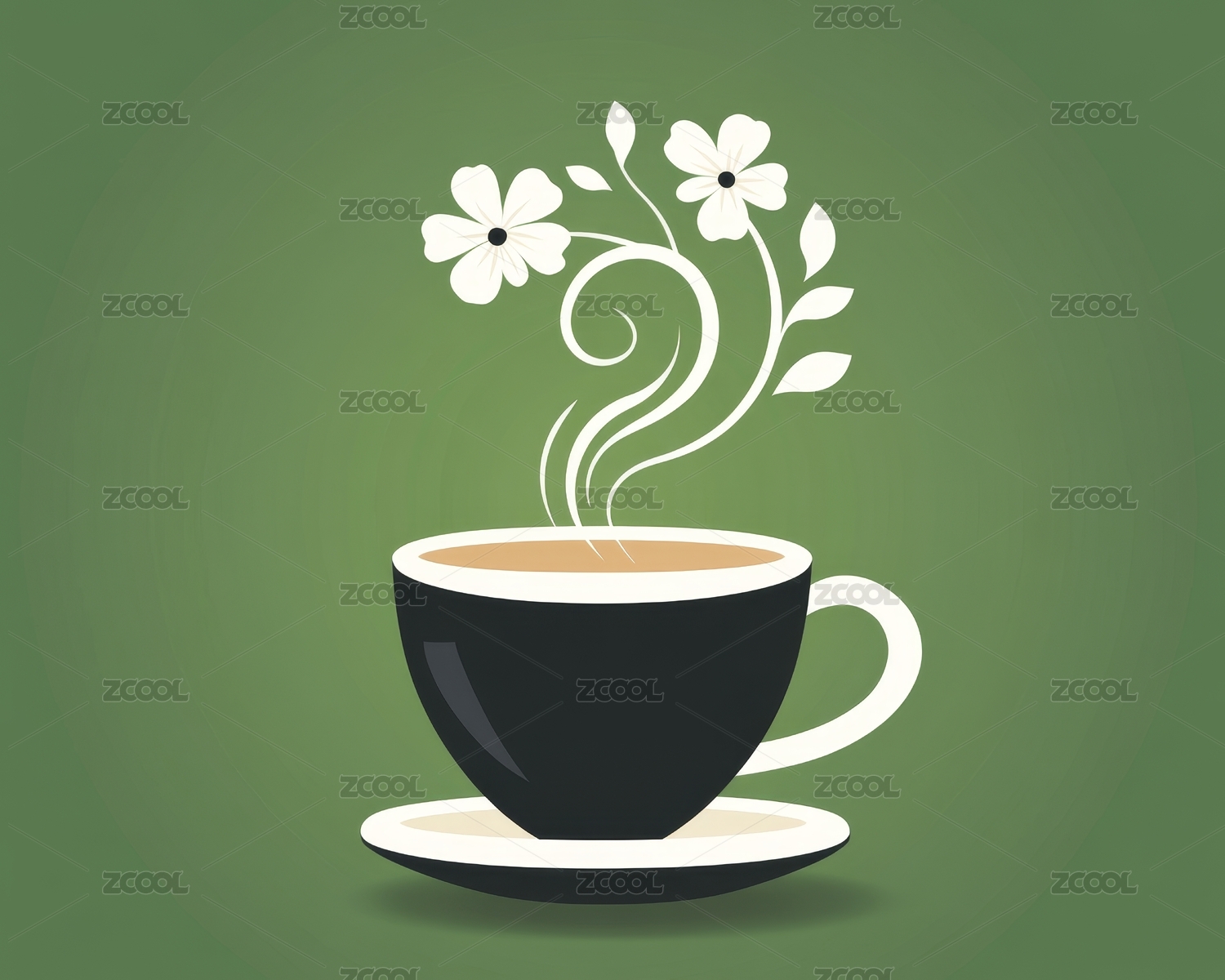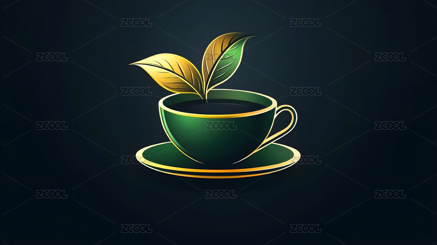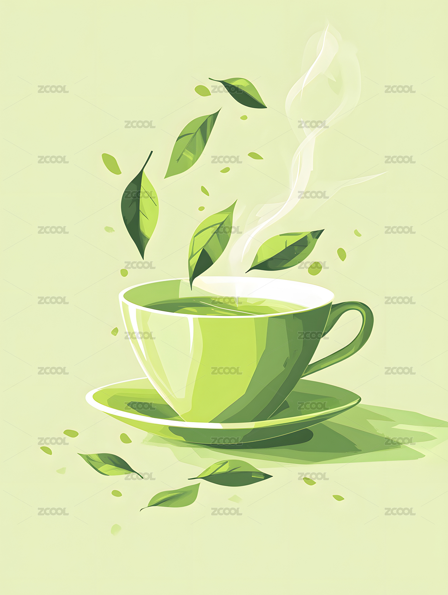 茶杯里的茶绿色插画