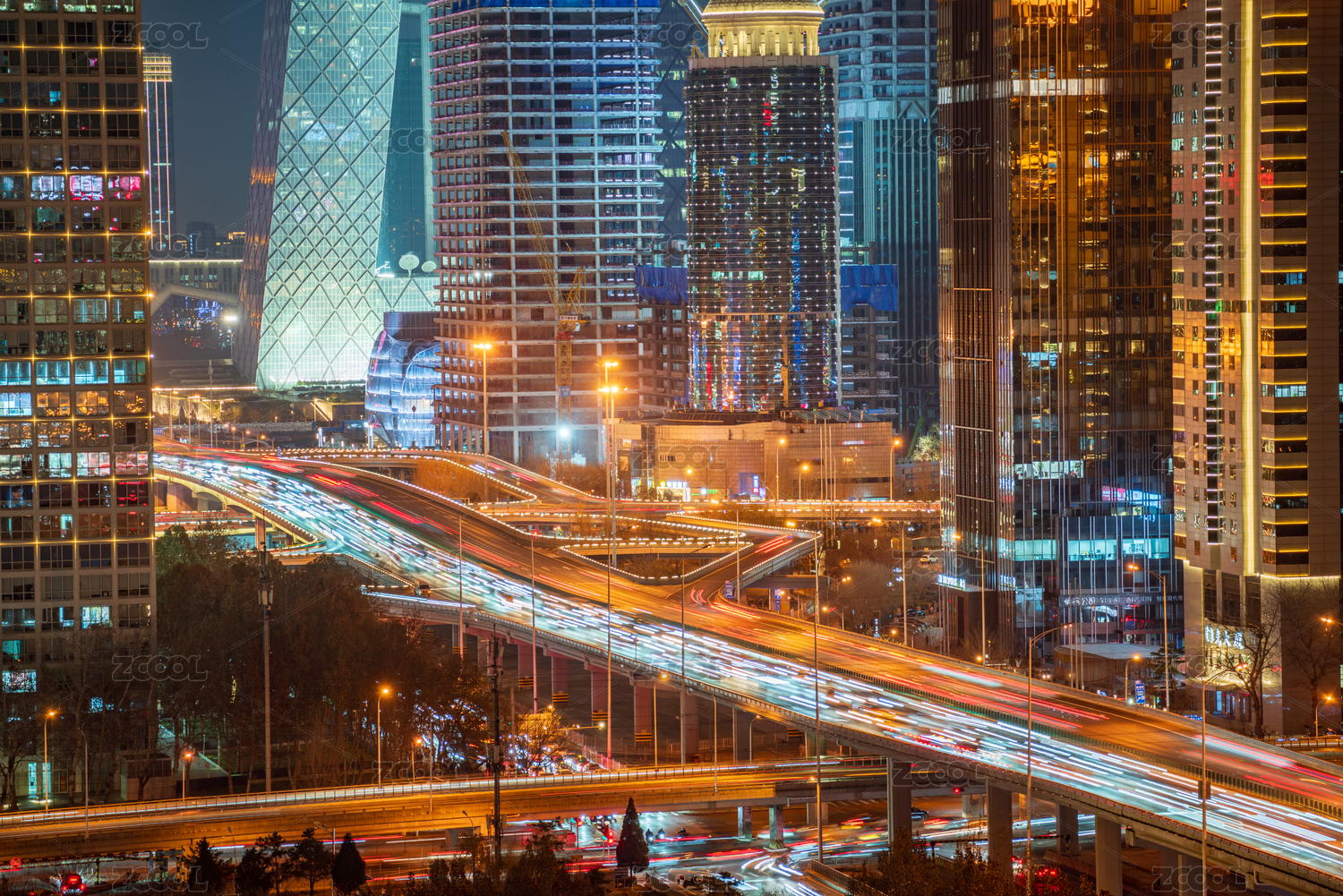北京,大郊亭,立交桥,夜景,车流,无人,城市,夜晚,户外,摩天大楼