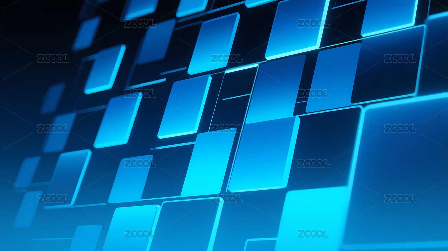 几何图形,发光线条,深色背景,科技感,未来感,蓝色调,抽象艺术,数字艺术,立体感,视觉冲击