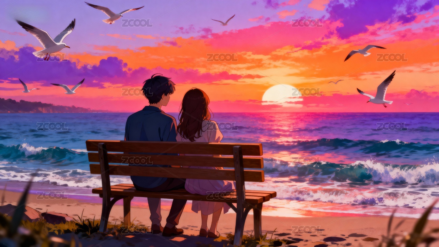 情侣动漫手绘插画