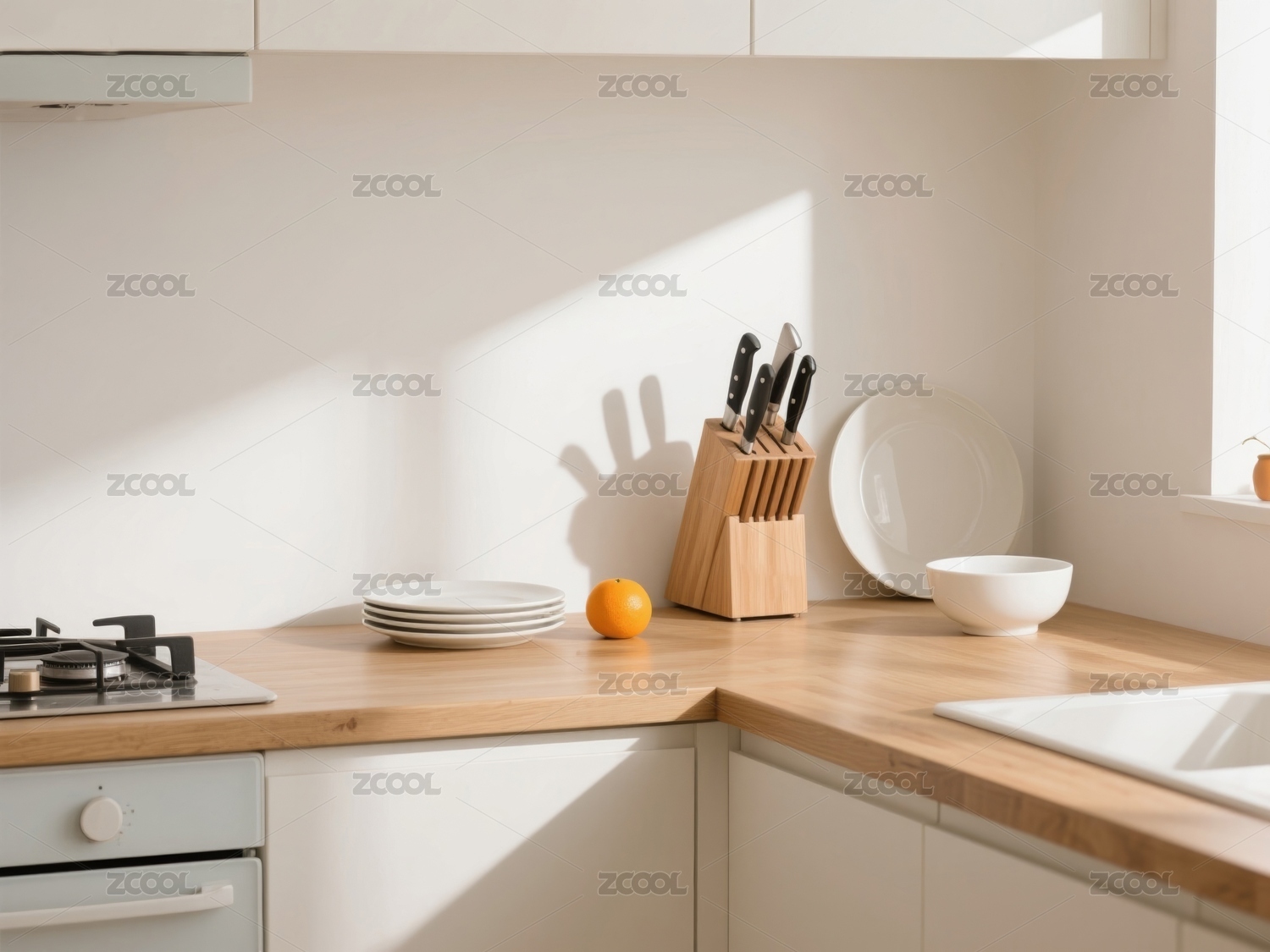 简约厨房角落阳光明媚