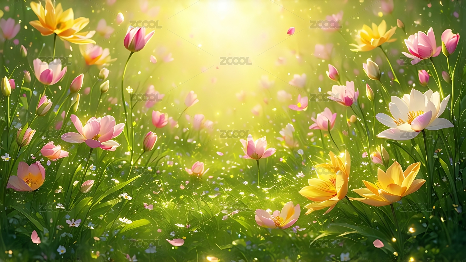 阳光, 花朵, 小路, 紫色花, 白色花, 绿叶, 黄色小花, 光芒, 阳光斑驳, 春天