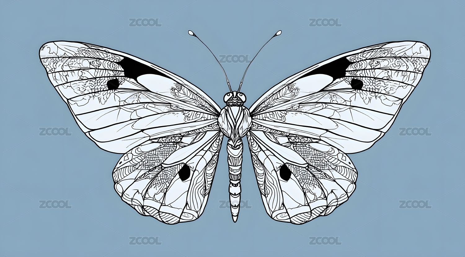 黑白线条勾勒的优雅蝴蝶