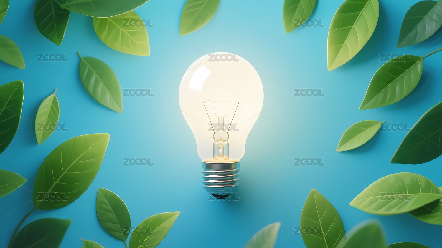 背景,自然,蓝色,光影,清新,叶子,简约,灯泡,科技,环保