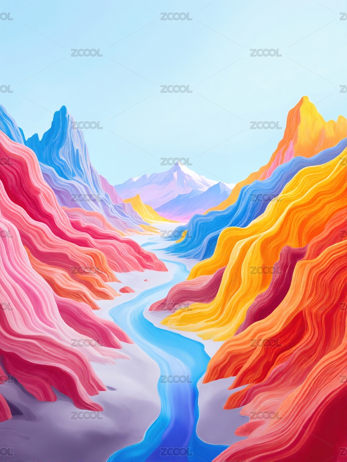 梦幻彩色山峦河流