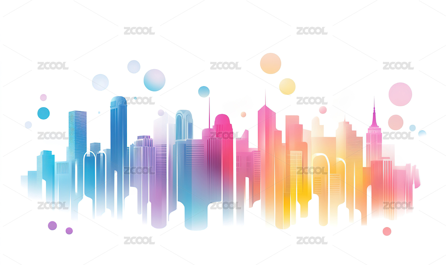 数码彩色城市抽象图形海报网页PPT背景