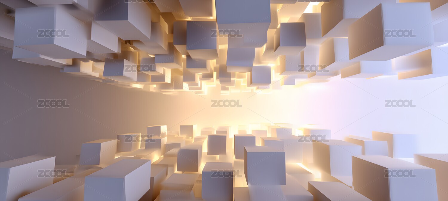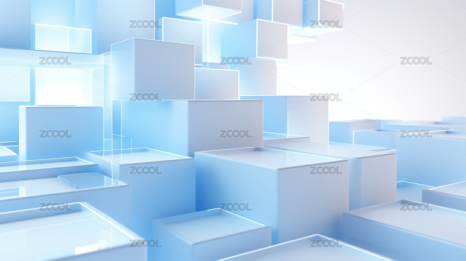 未来科技感蓝色水晶透明玻璃几何立方体背景
