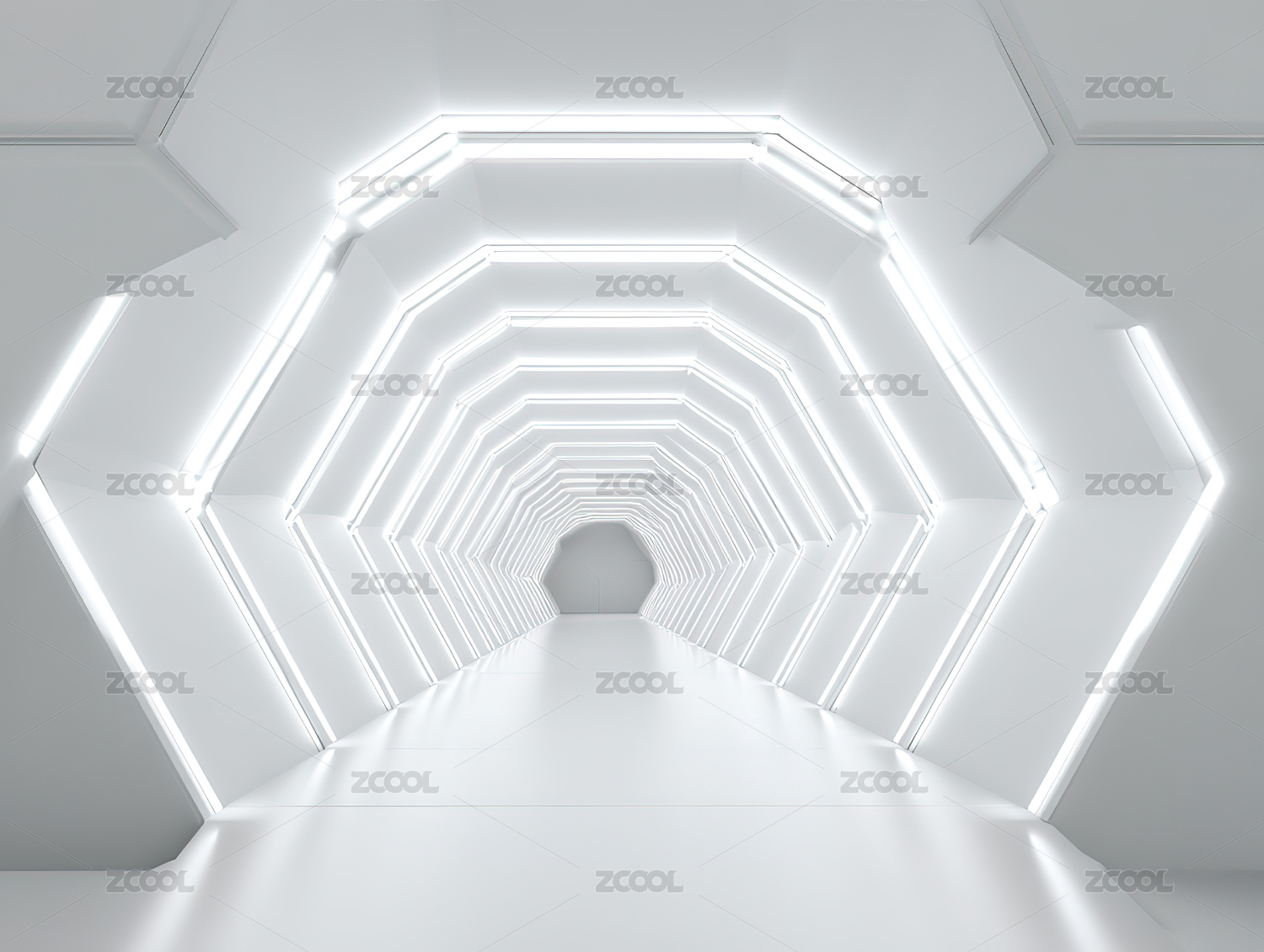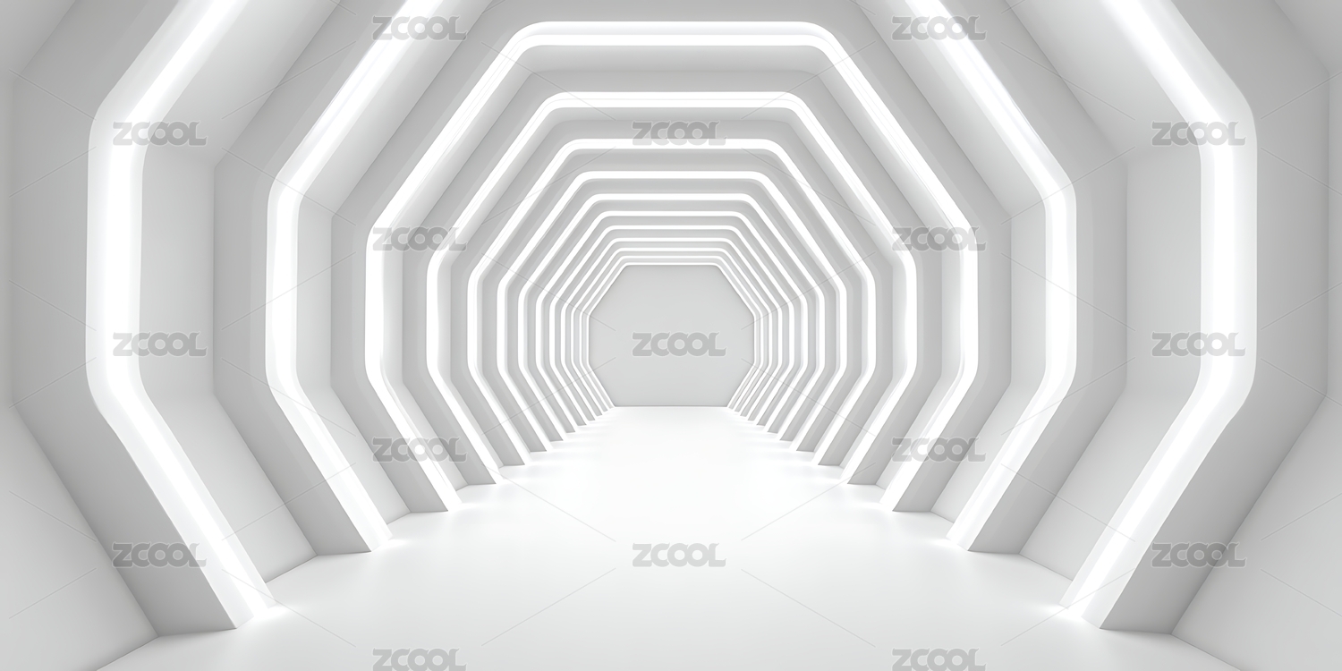 未来感白色六边形隧道