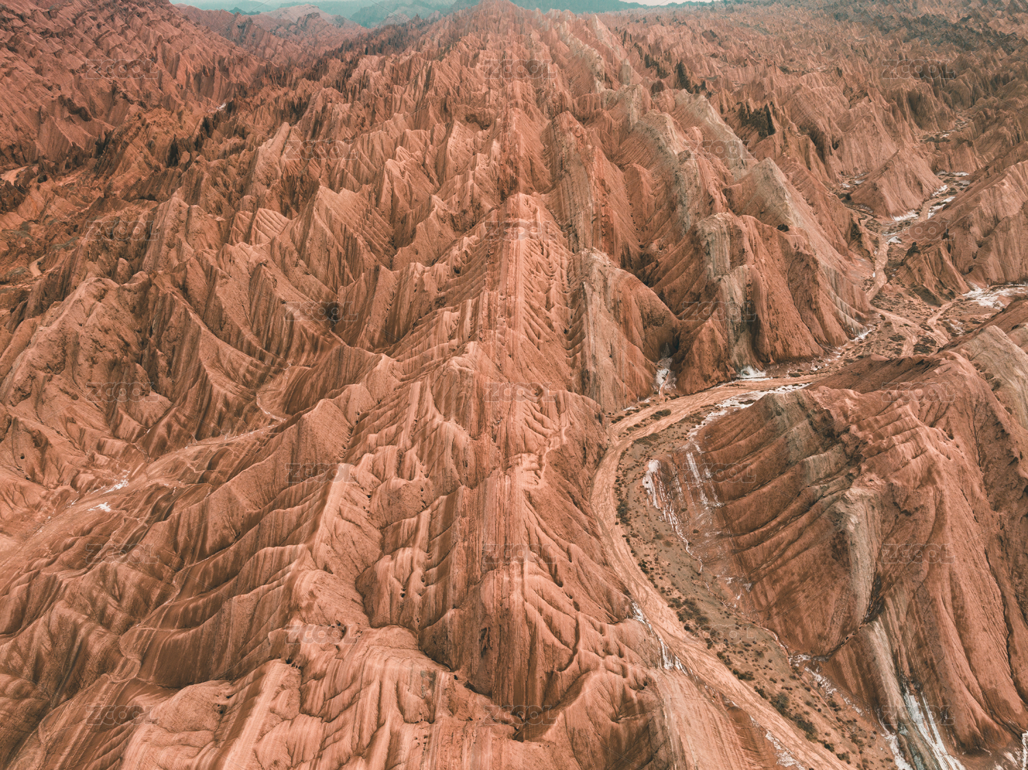 中国,新疆,阿克苏,库车,天山,红山石林,红山峡谷,航拍,河流,地质地貌