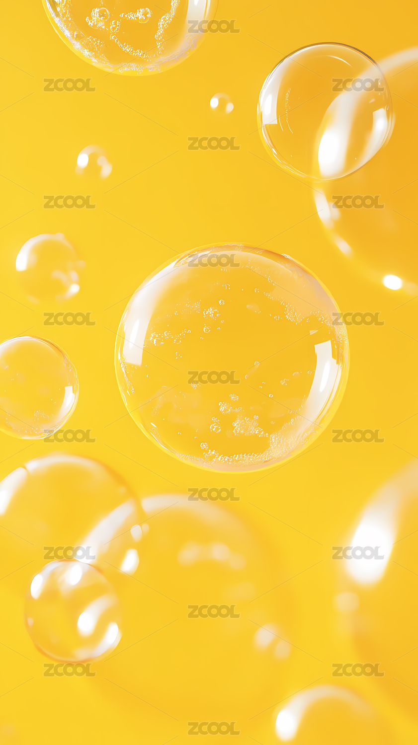 黄色背景上透明气泡的光影