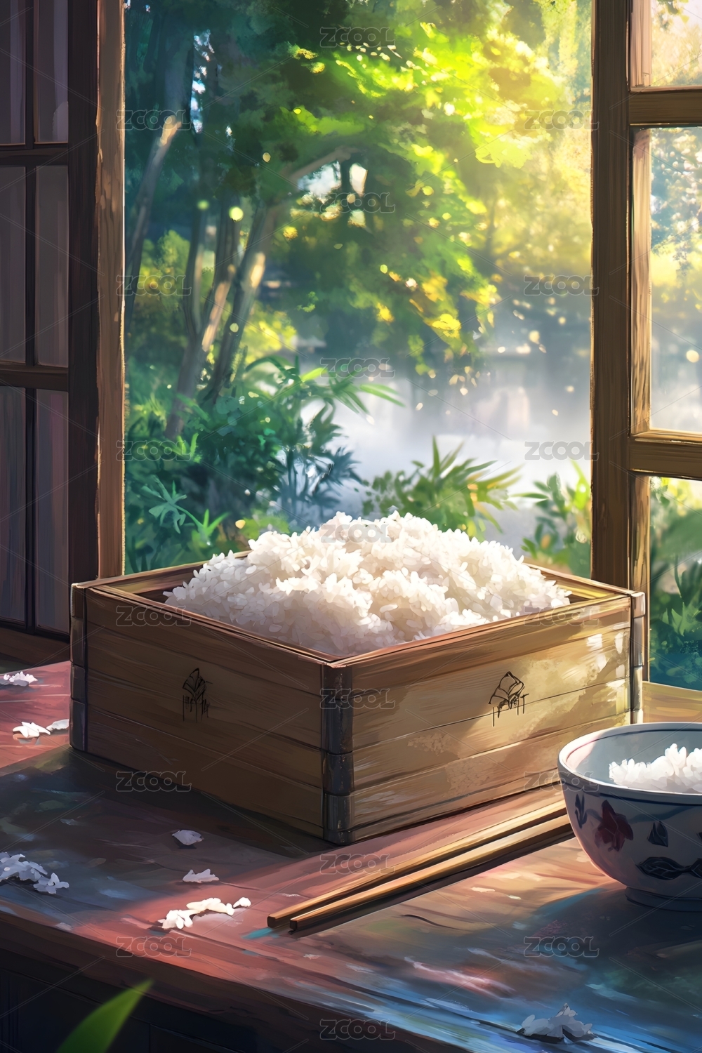 日式餐桌上木质筷盒与米饭的宁静氛围