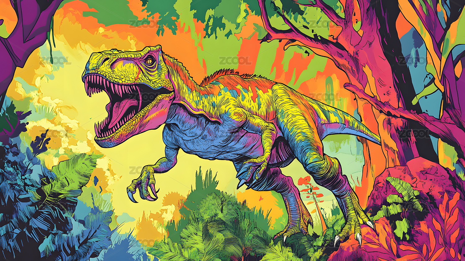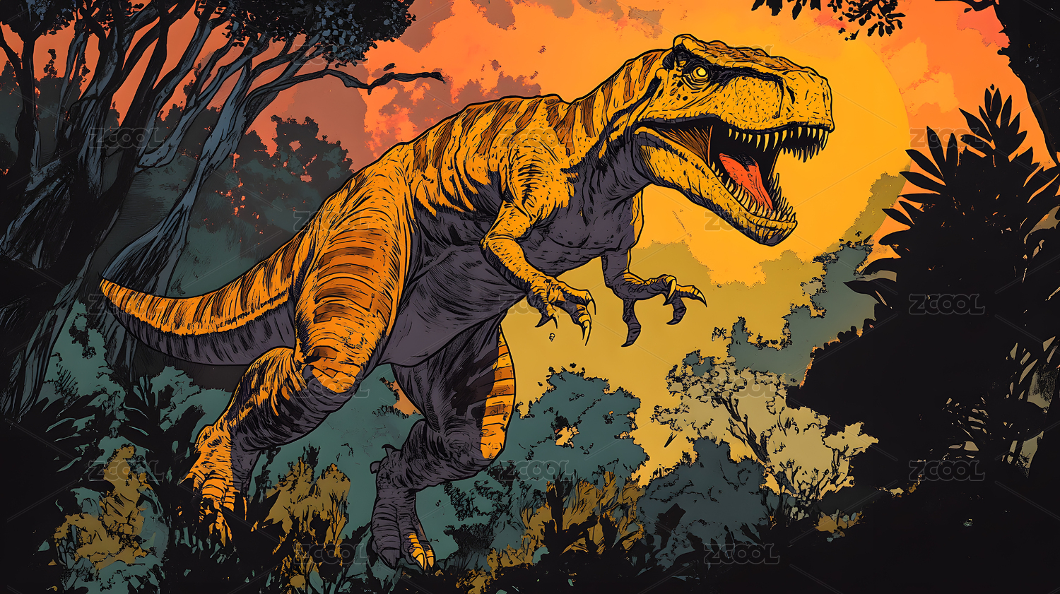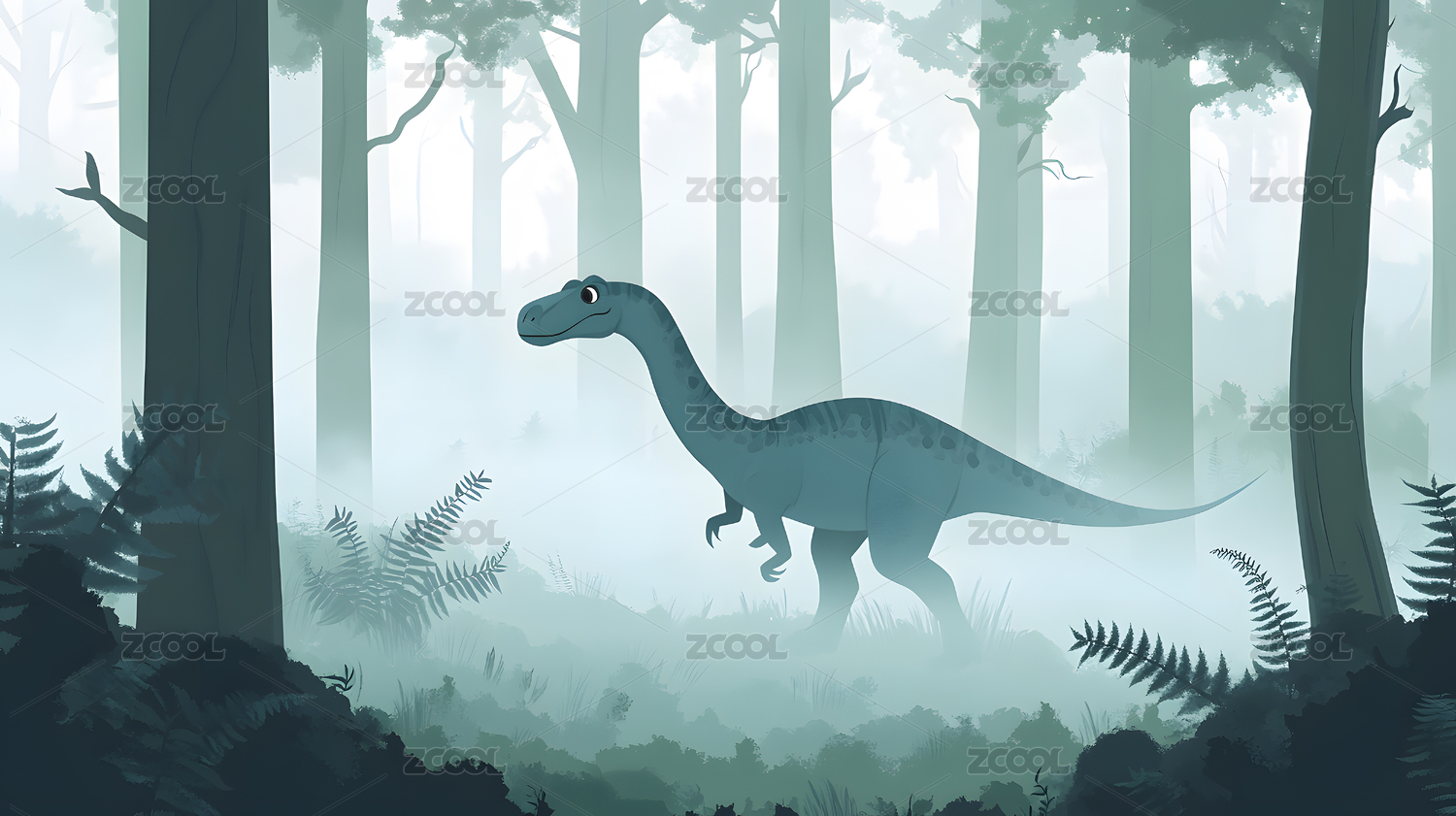 科幻卡通一只昂首爬行威猛可爱的恐龙插画