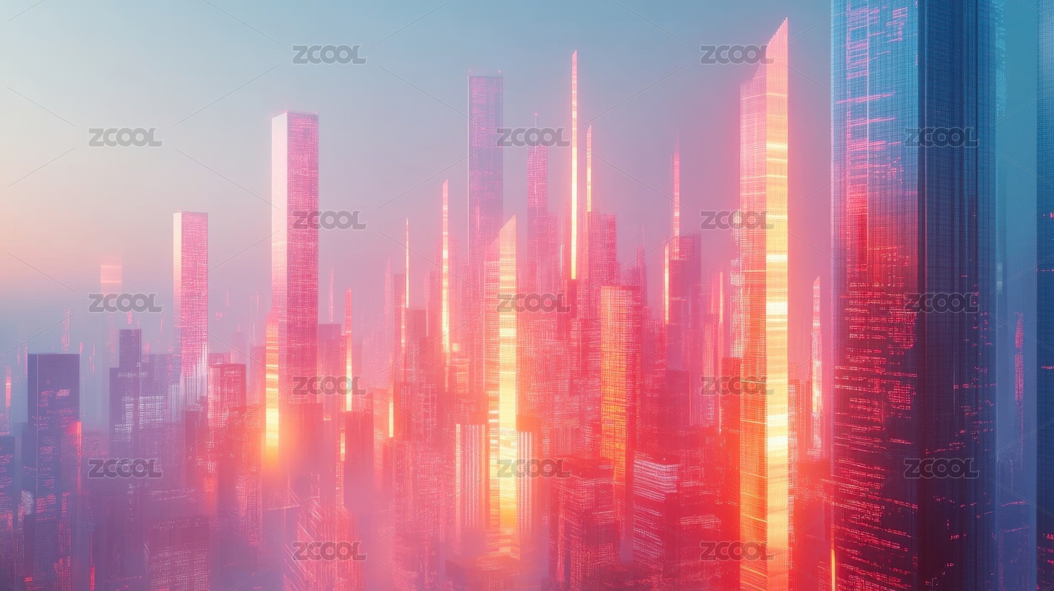 科技城市虚拟概念玻璃建筑水面倒影背景
