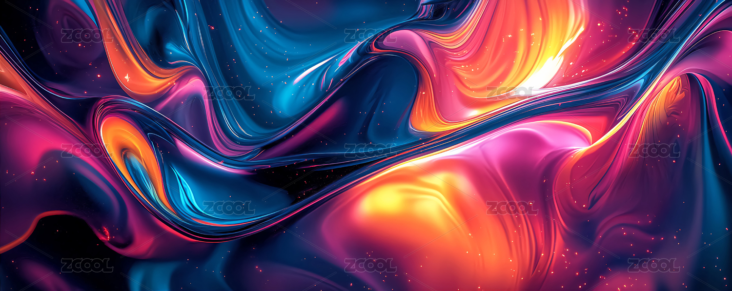 炫彩,艺术,颜料,流体,融合,交织,渐变,梯度,动感,曲线