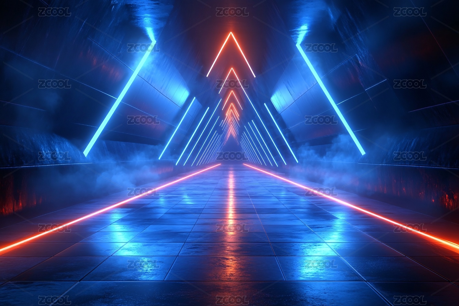 科幻风格霓虹光线通道场景
