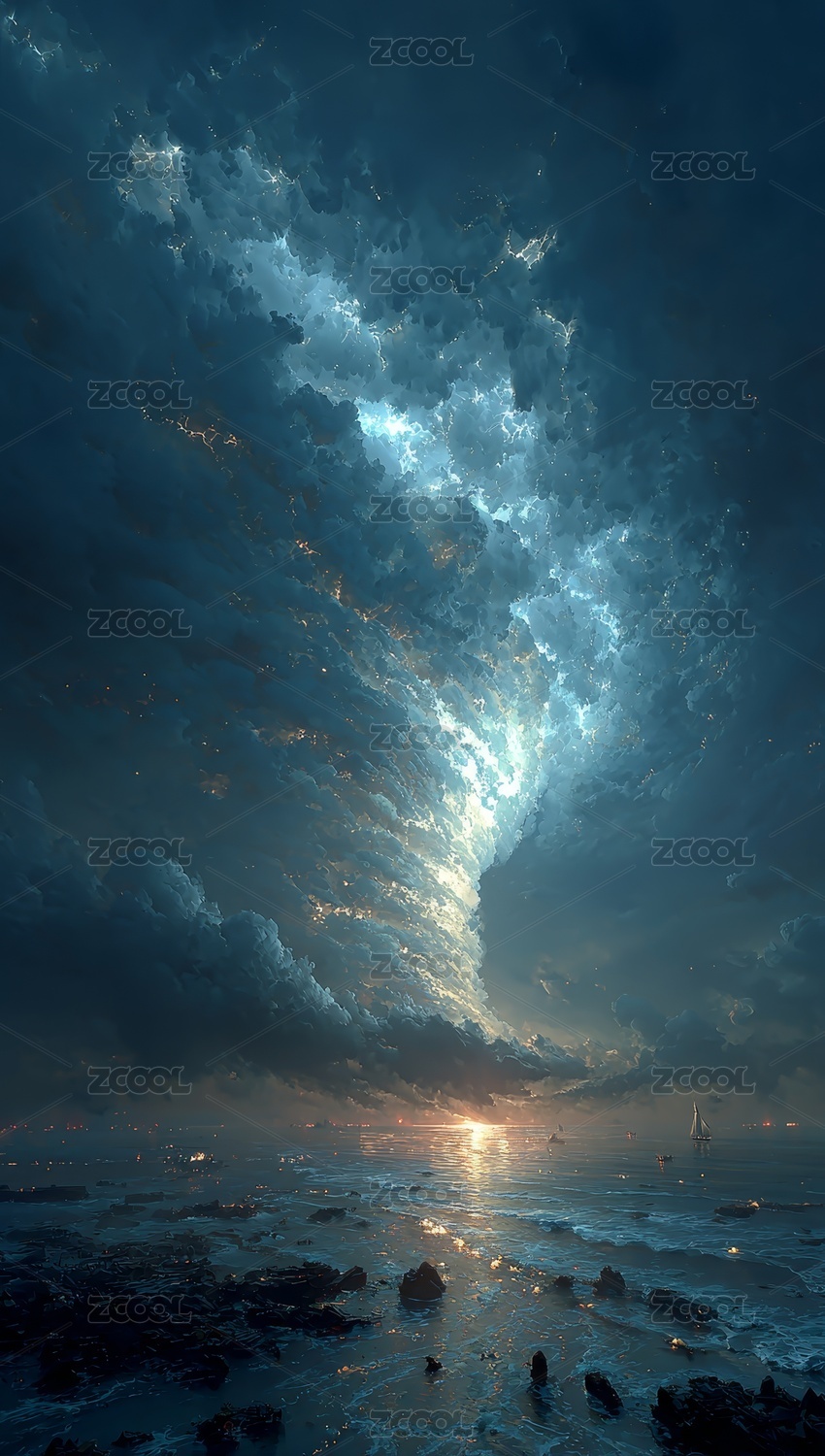 天空,自然,海洋,海水,浪花,画面,光线,云彩,白云,蓝天