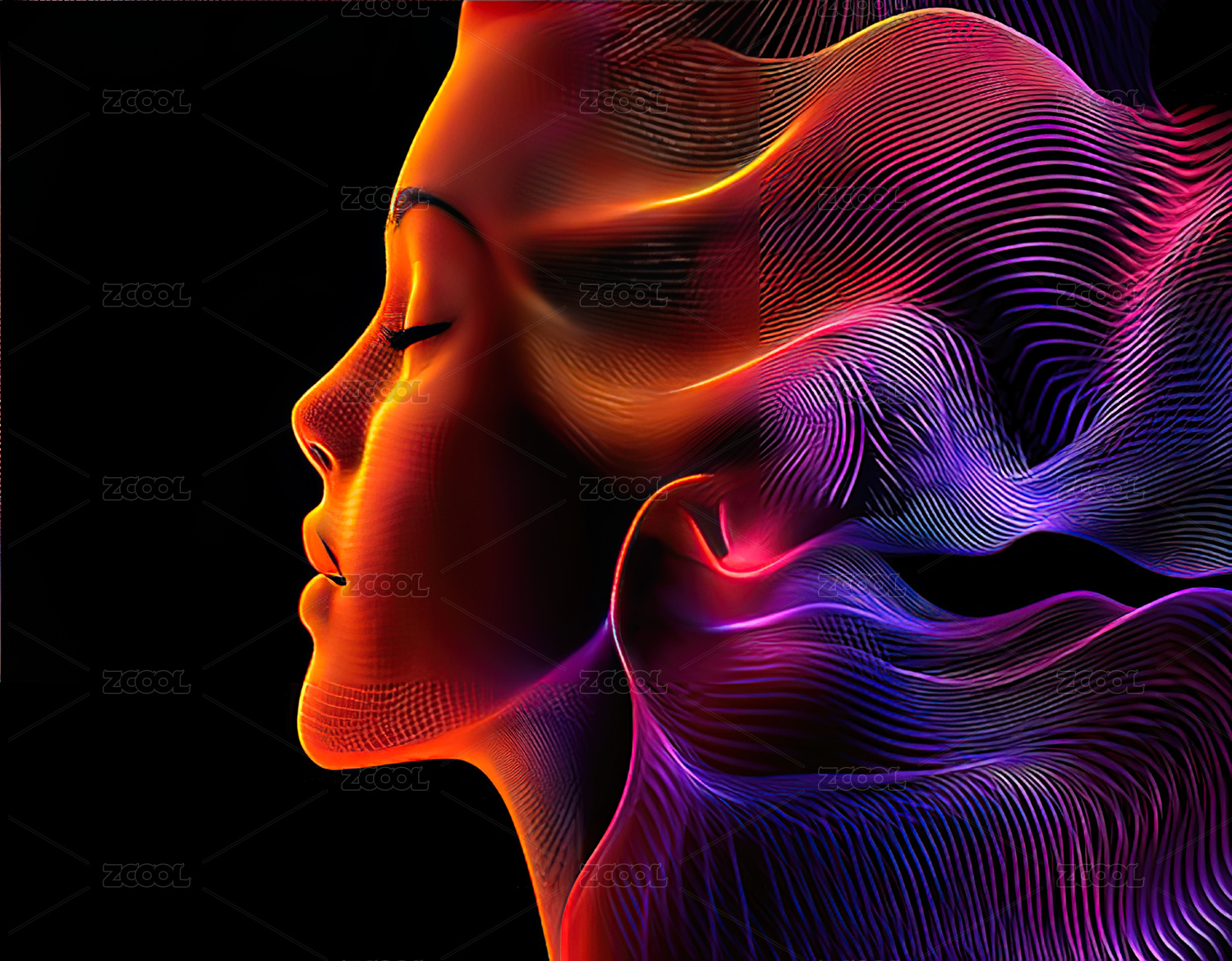创意抽象科幻彩色颜料女性青年发光人像插画