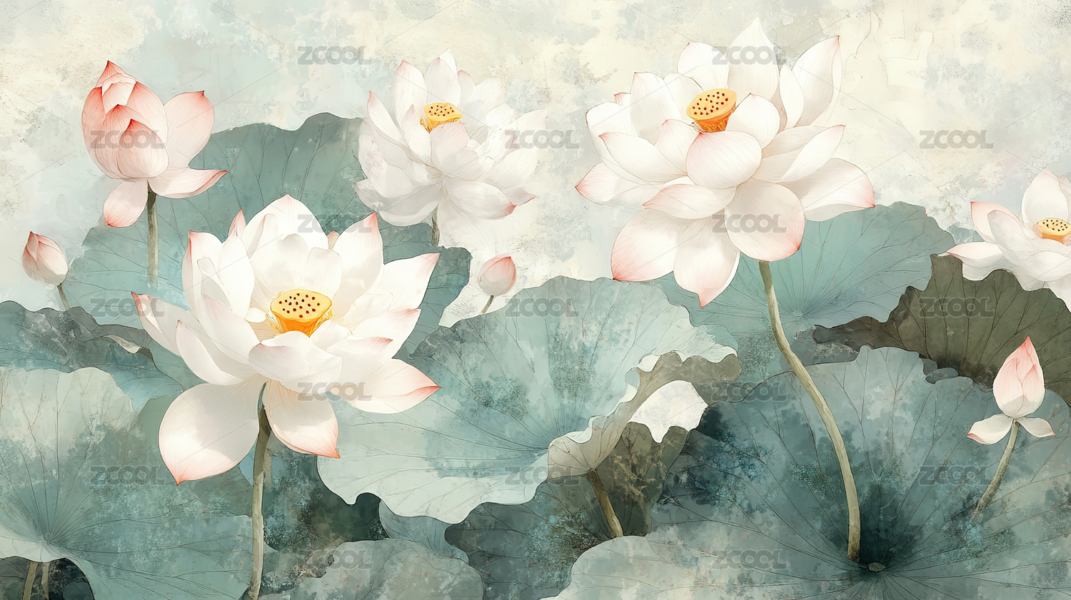 水墨莲花荷叶背景图