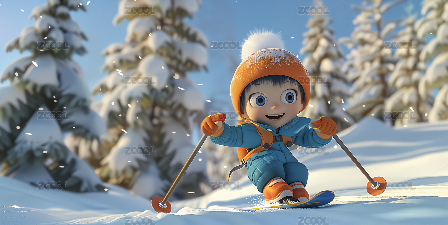 3D滑雪小男孩