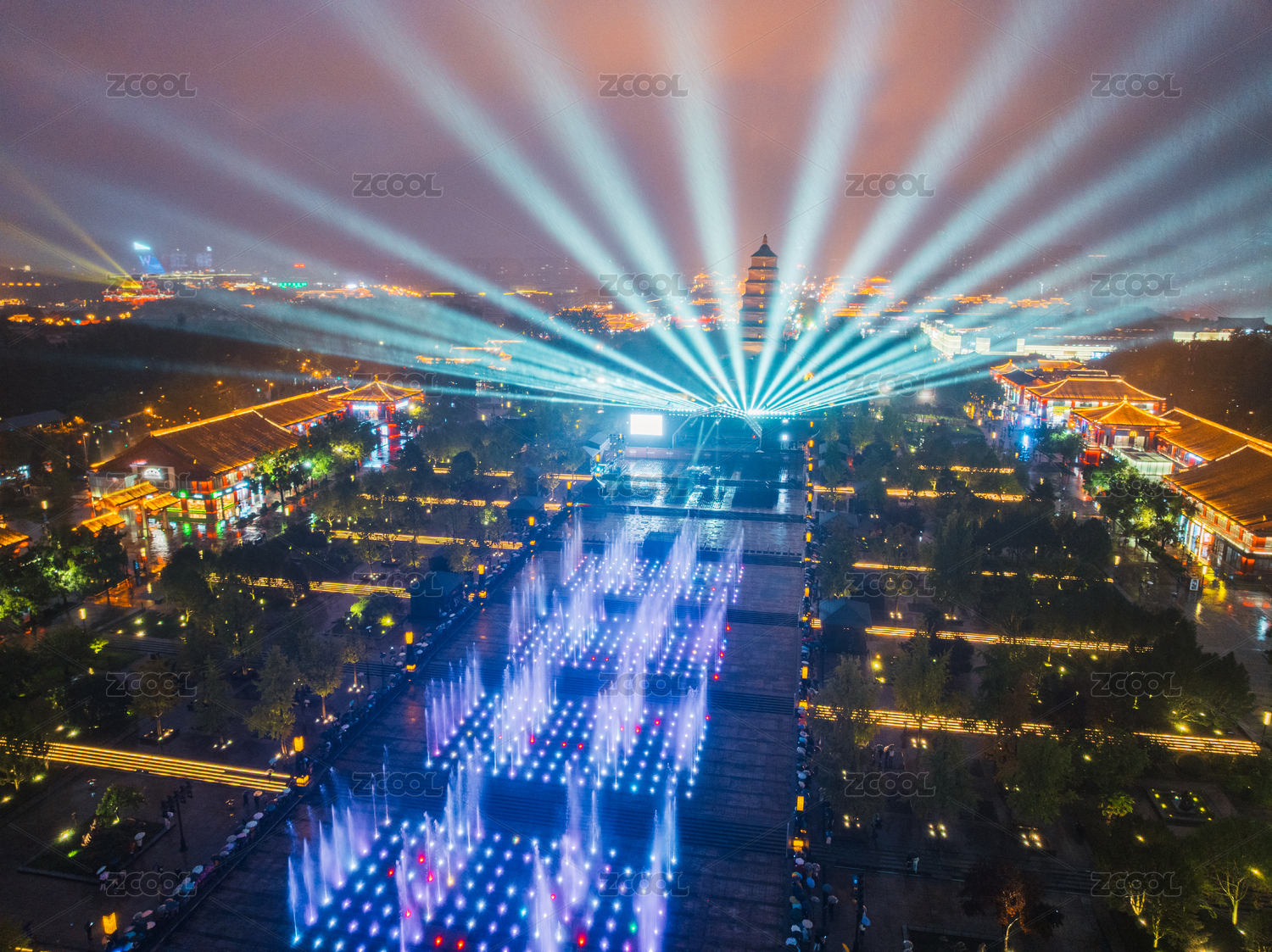 中国陕西西安大雁塔大唐不夜城夜景航拍风光