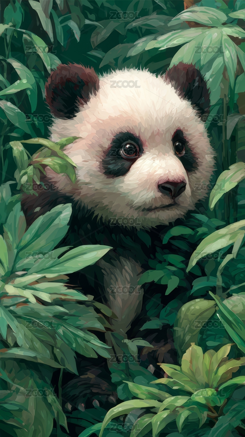 绿色,动物,3d,剪纸,纸,熊猫,竹子,森林,可爱,吃