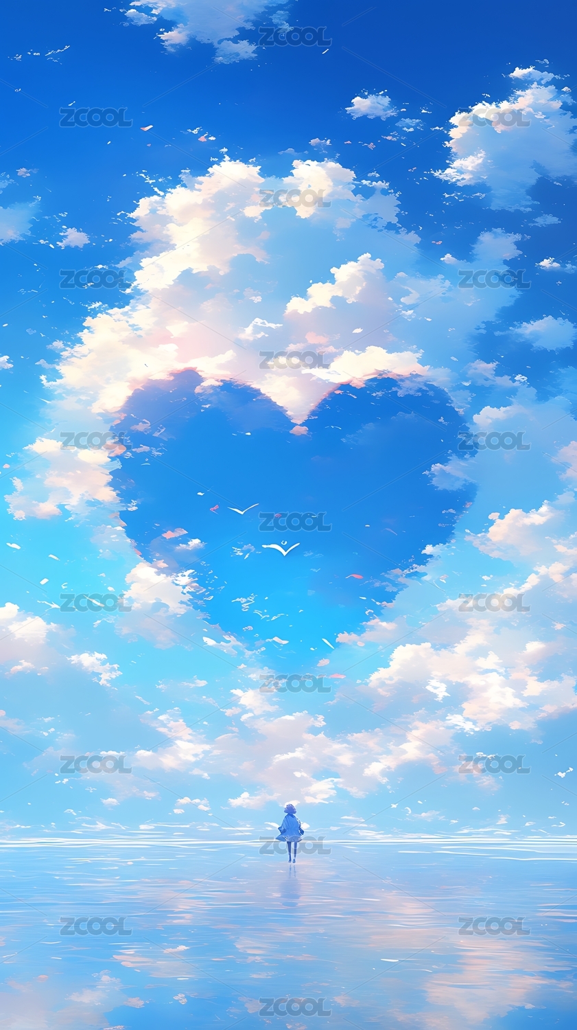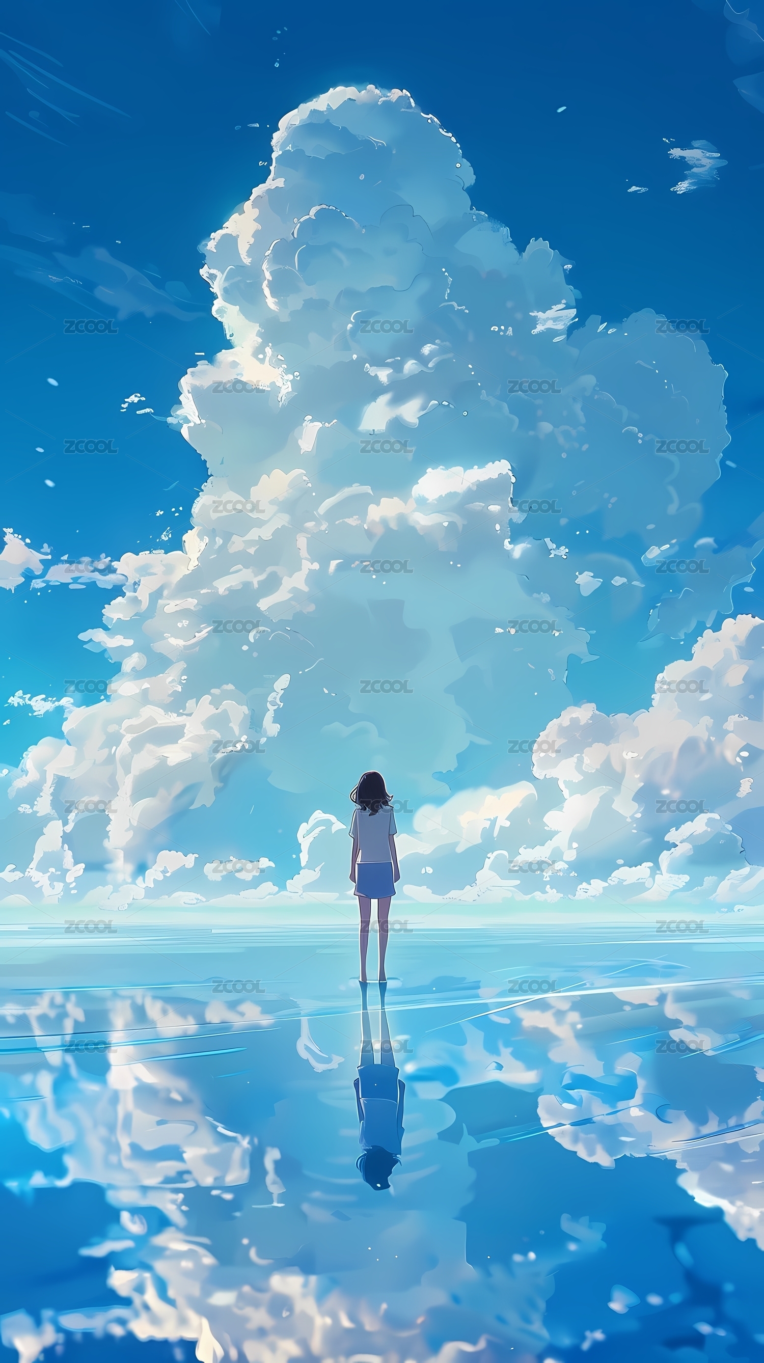 女孩,云,海,蓝,天空,白,艺术,抽象,云景,阳光