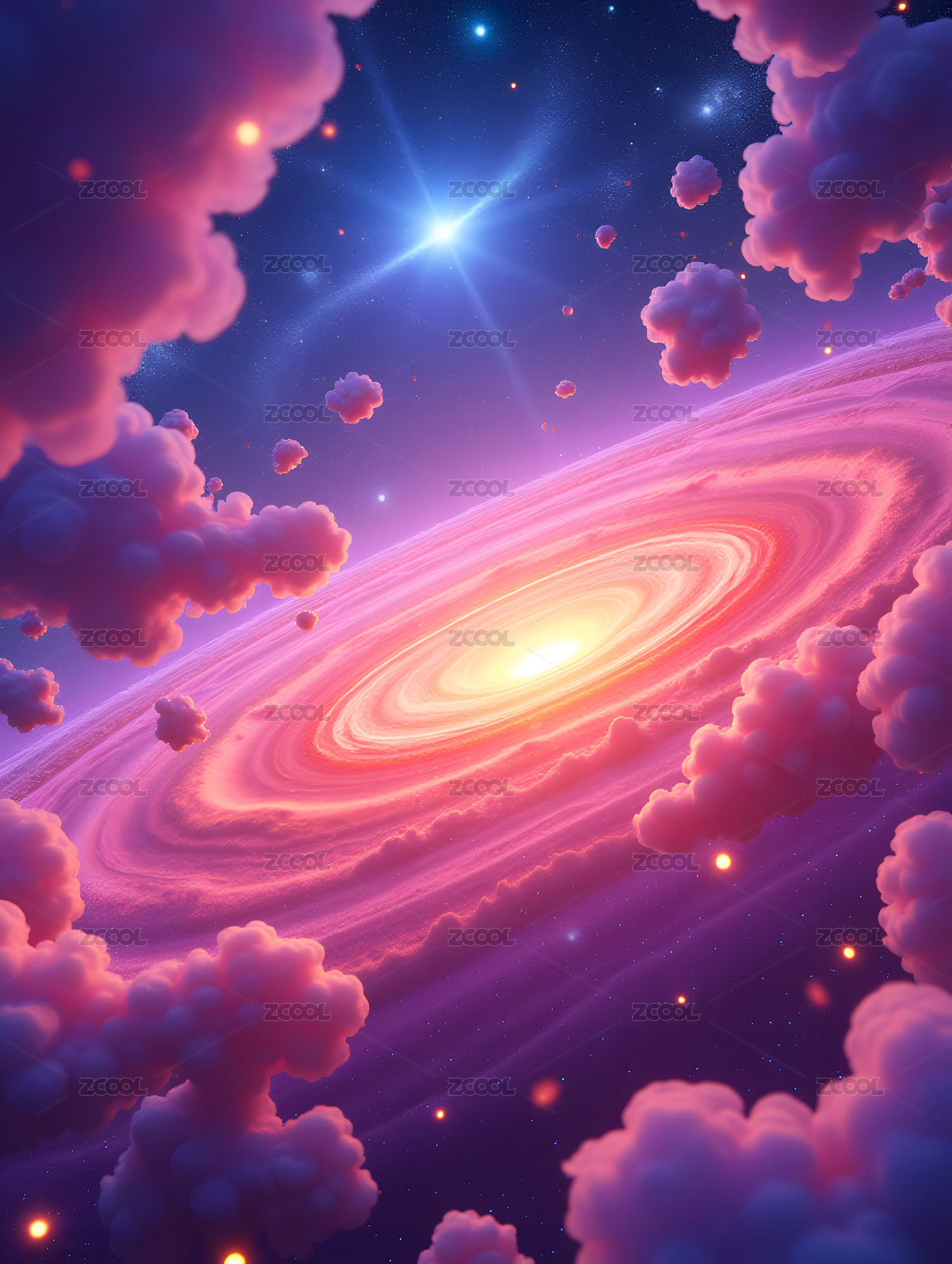毛毡风格粉色星球宇宙梦幻场景壁纸