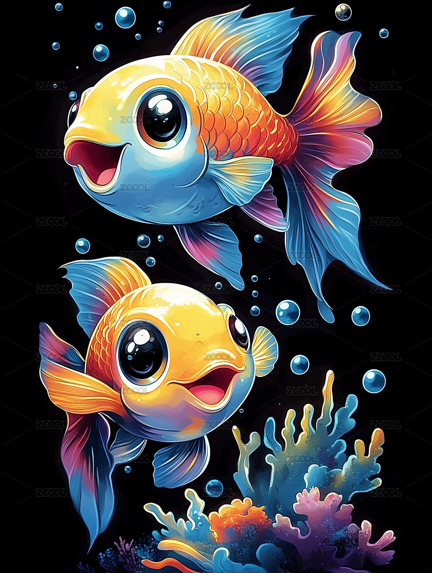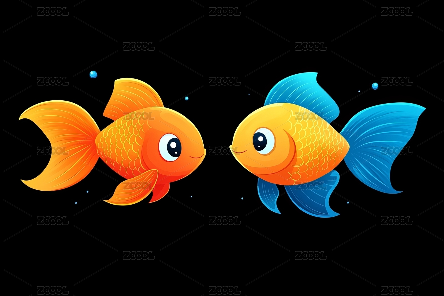 两只可爱卡通金鱼