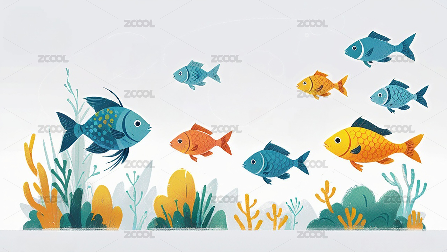 卡通海洋小鱼插画