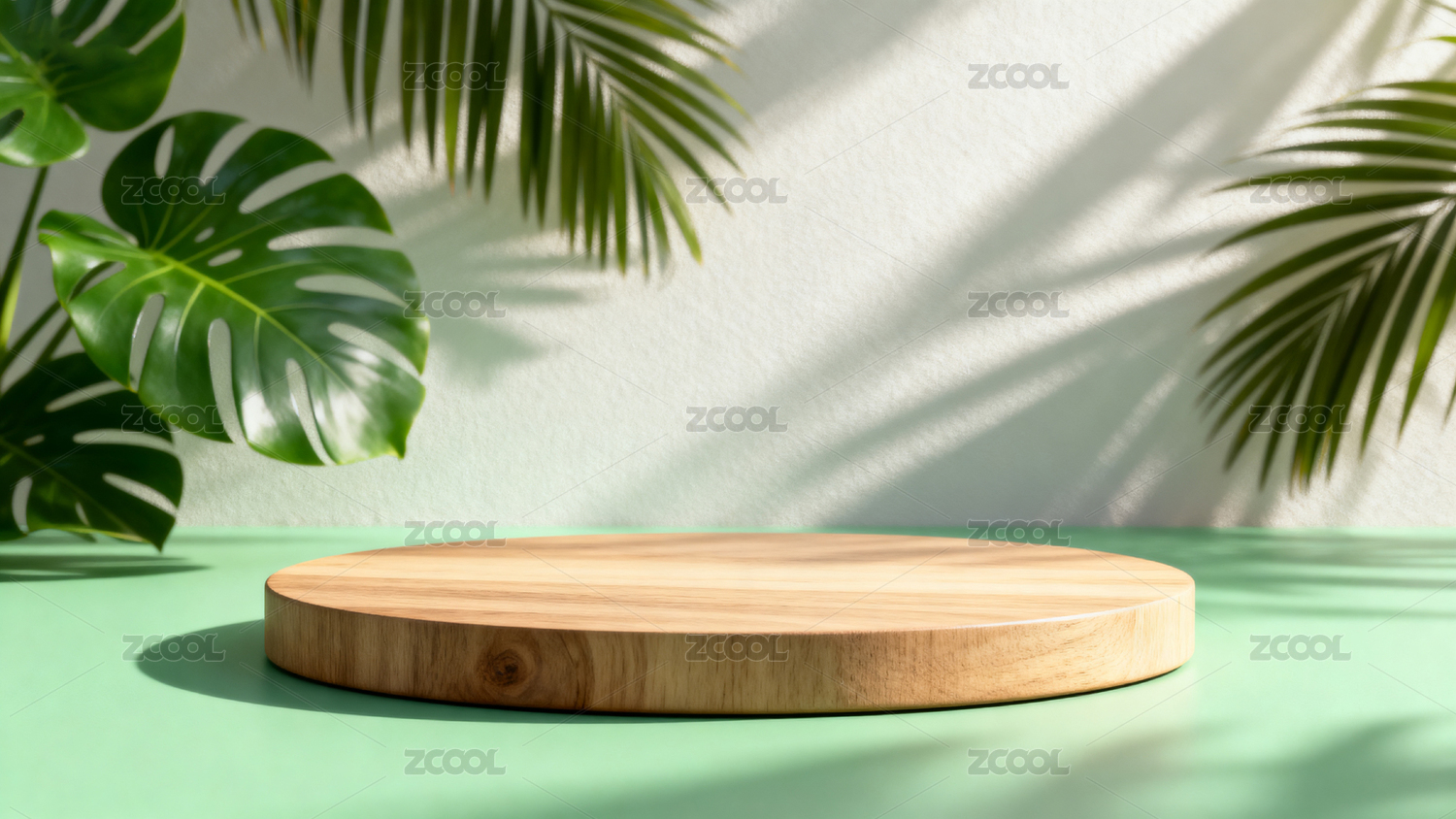 绿色,空间,设计,木质,平台,沙滩,棕榈叶,墙壁,米色,热带