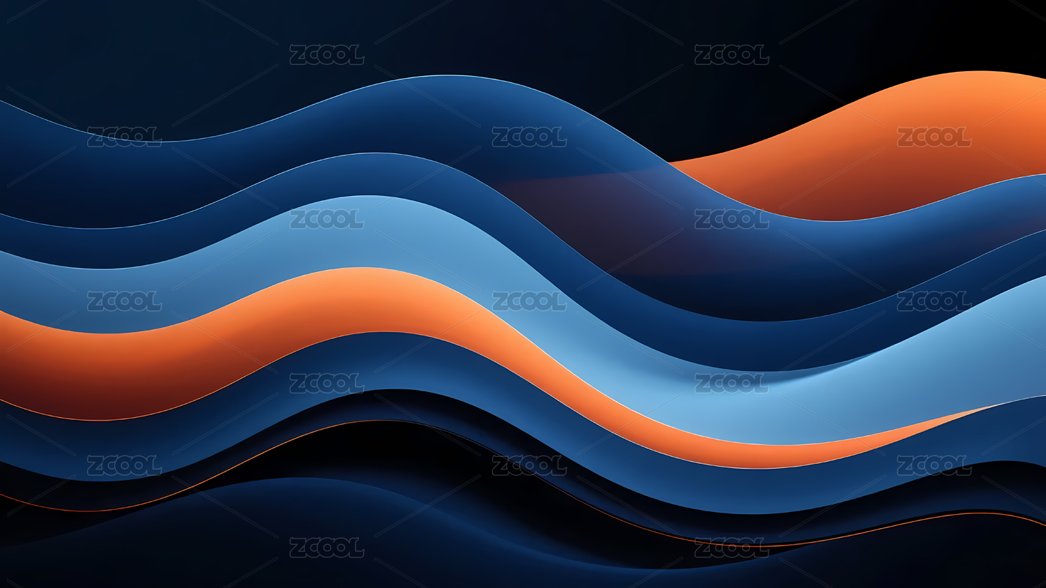 蓝色,宁静,和谐,橙色,深色背景,视觉,抽象,动态,波浪,流动