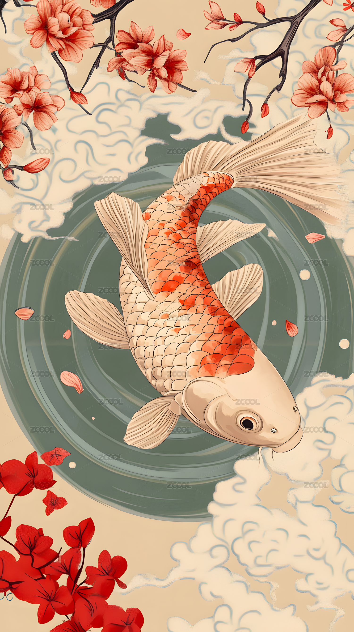 祥云锦鲤花朵盛开