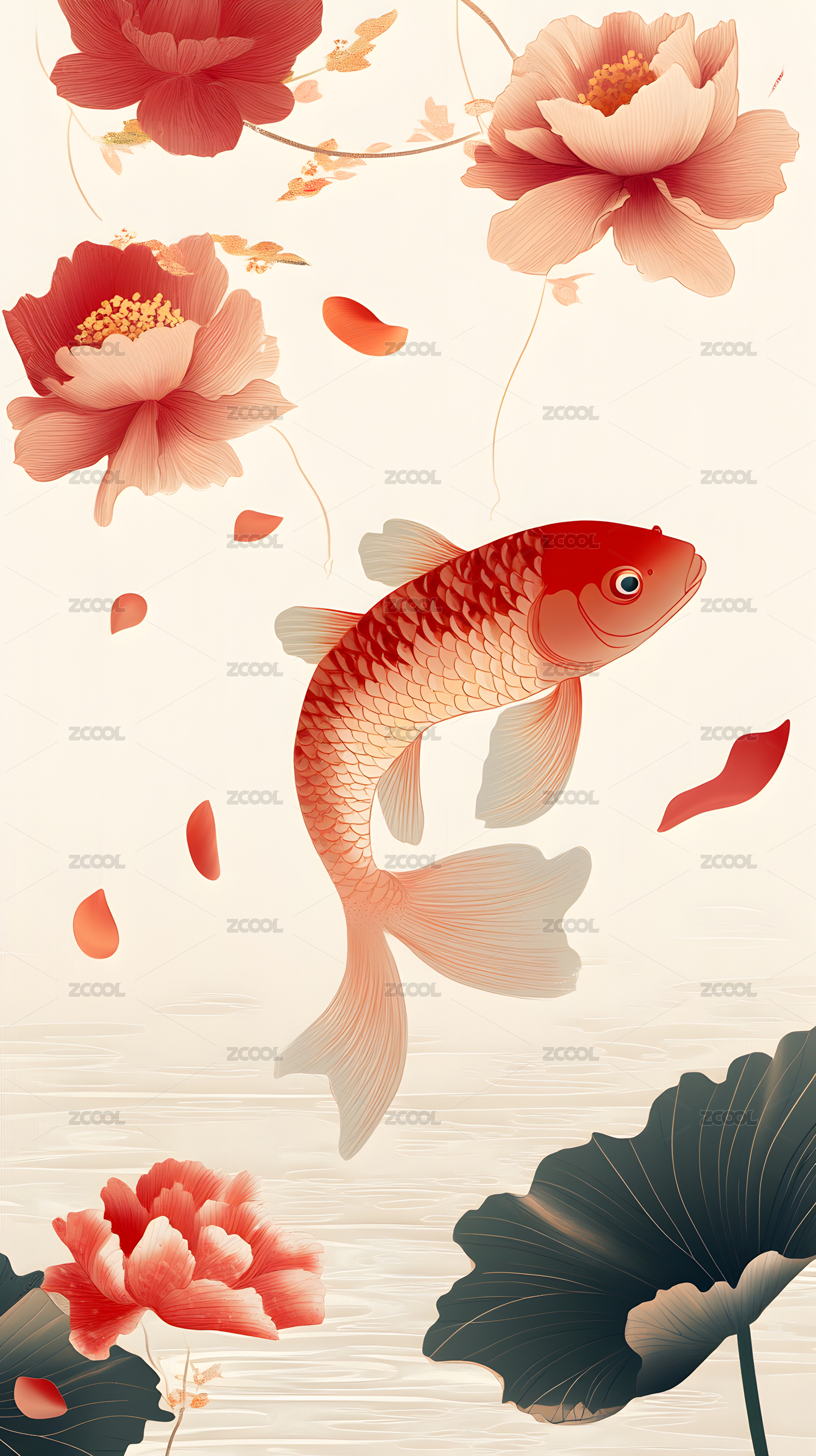 壁纸,背景,鲤鱼,艺术,绘画,精美,插画,纹理,图案,优雅