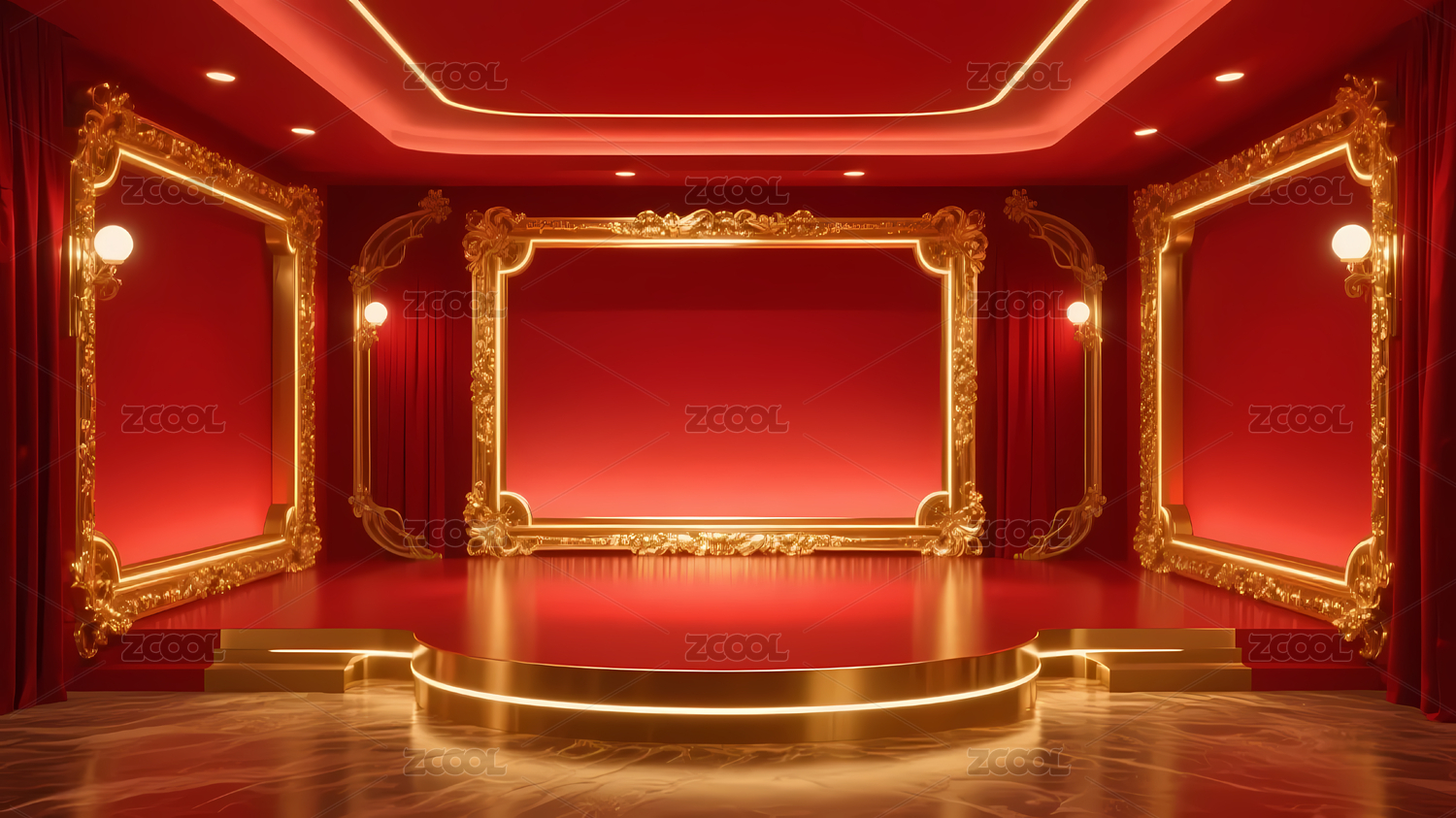 豪华红色舞台与金色装饰