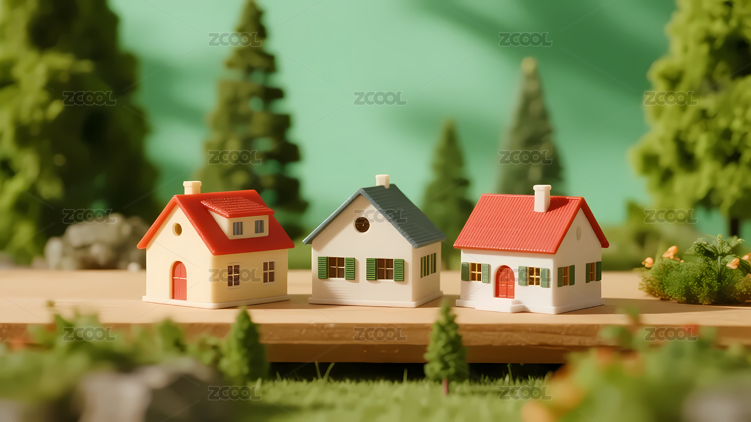 小屋,房屋,田园,绿地,草地,模型,迷你,景观,场景,自然