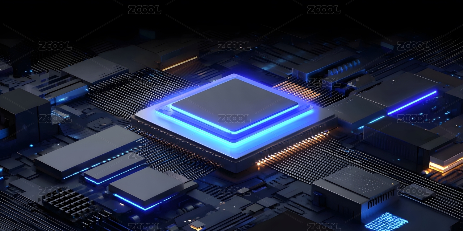 芯片金融科技赛博朋克人工智能三维渲染电路