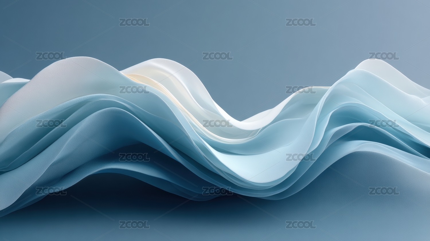 蓝绿色抽象流动柔和的丝绸曲线背景