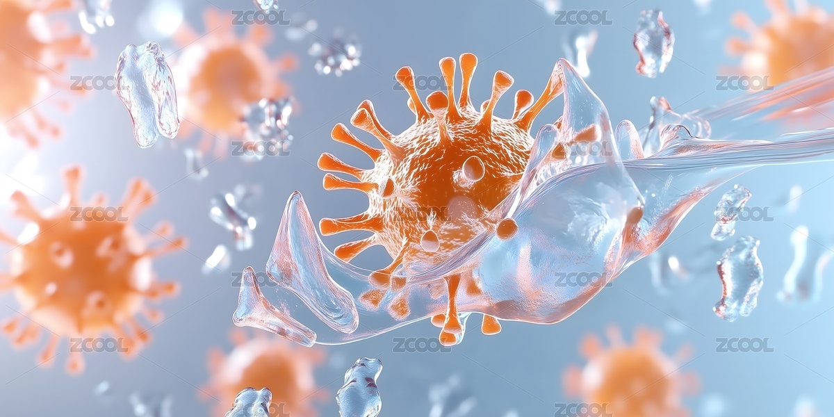 写实风格微观视角病毒、病毒性疾病流行细胞