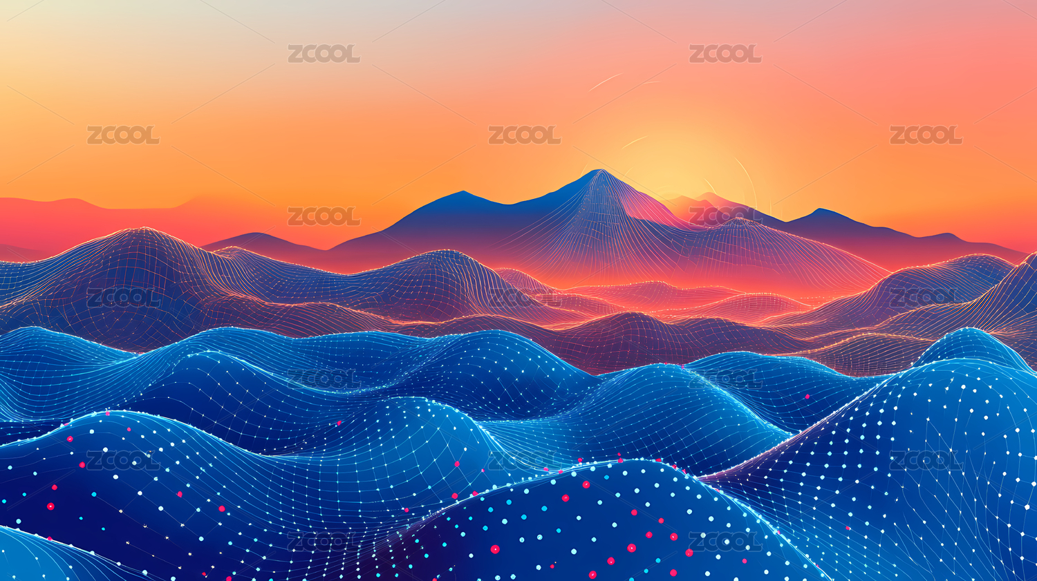 霓虹山峦与落日
