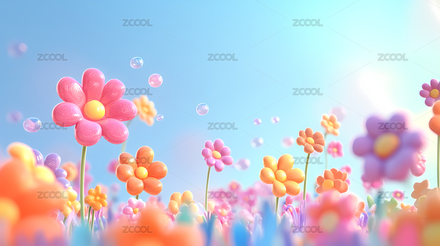 五彩缤纷的卡通花朵和泡泡