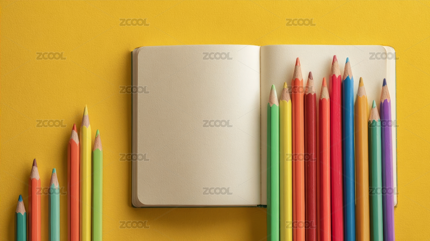 叠起的书籍笔筒铅笔学生文具,教育主题背景