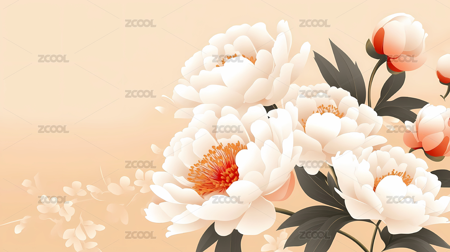 淡雅牡丹花丛插画