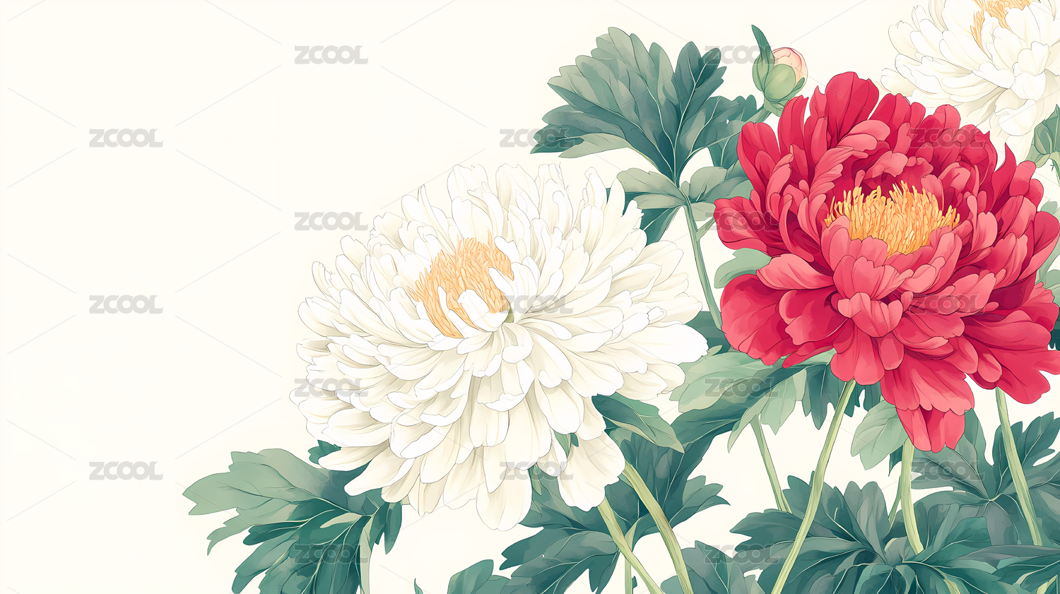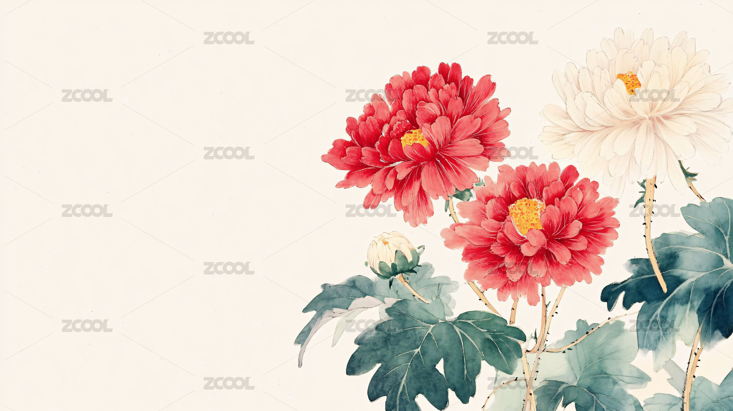 红白菊花水墨画