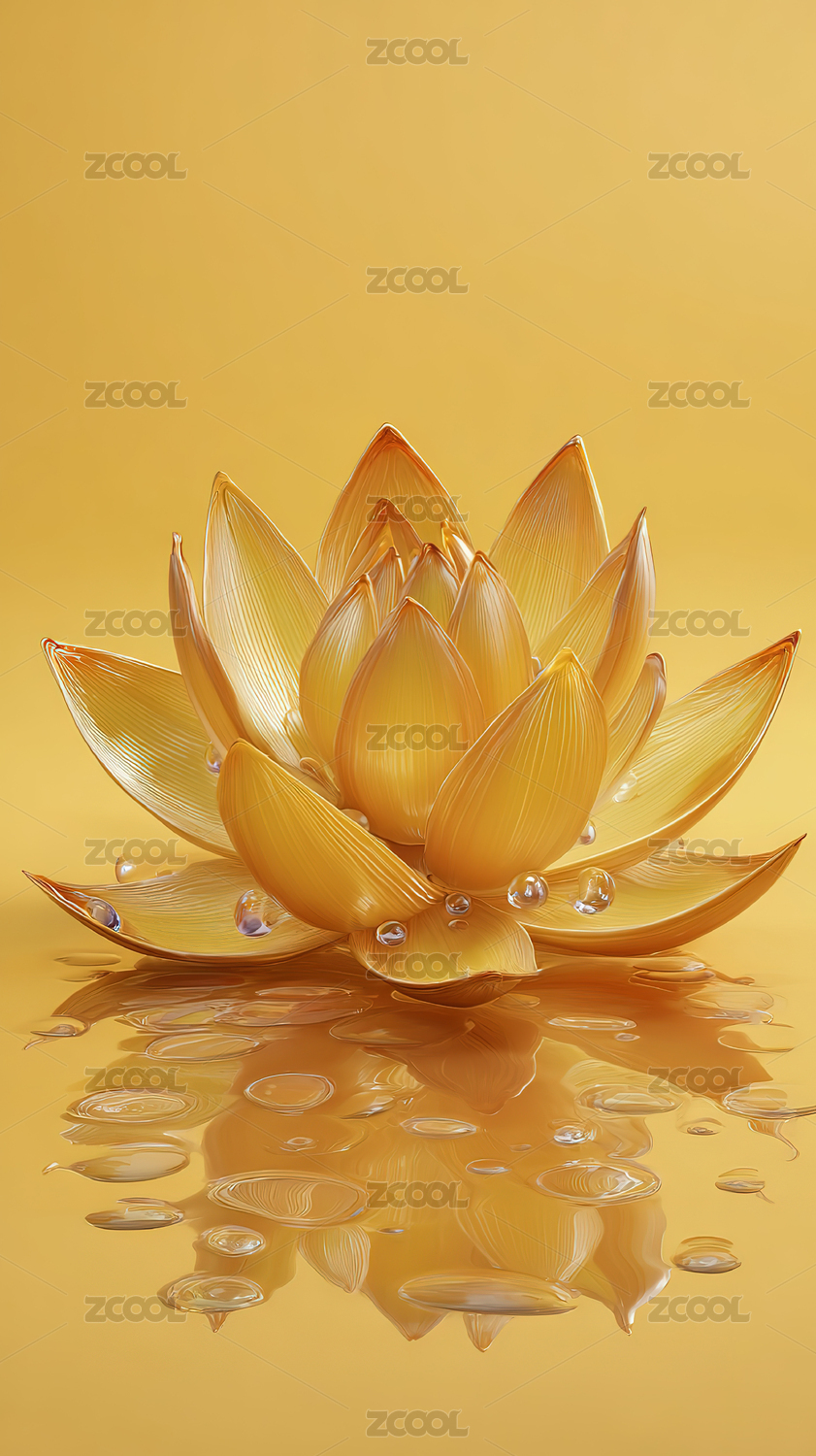 金色,黄色,3D,花朵,荷花,水,水晶,抽象,海报,背景