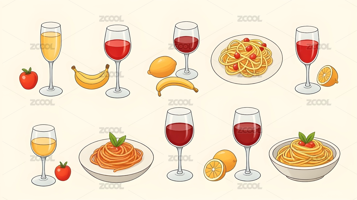 精美果酒配餐插画
