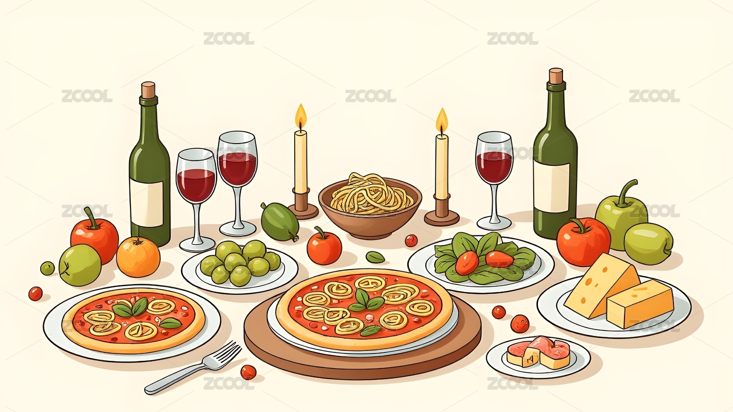 盘中食物配酒插画
