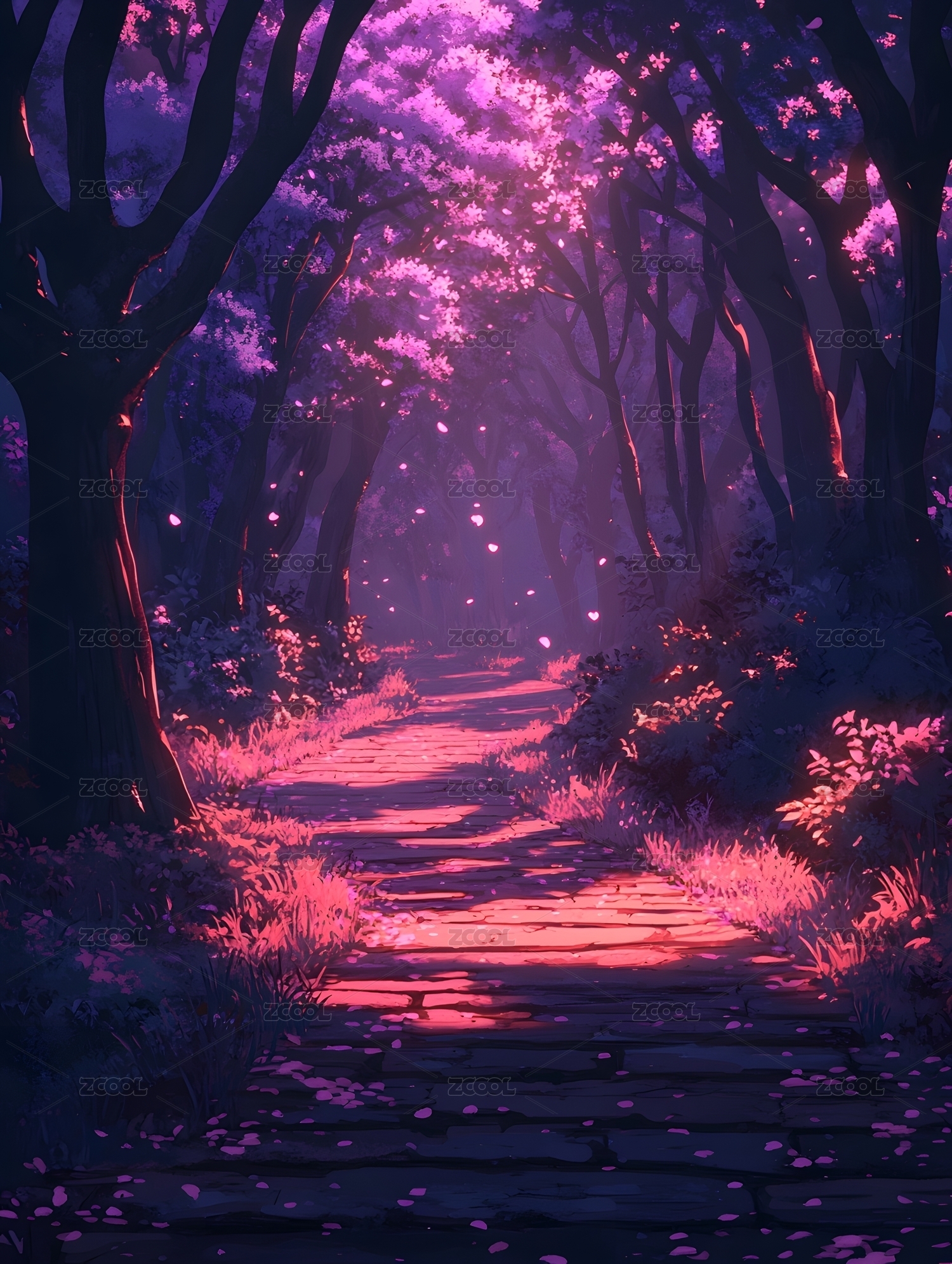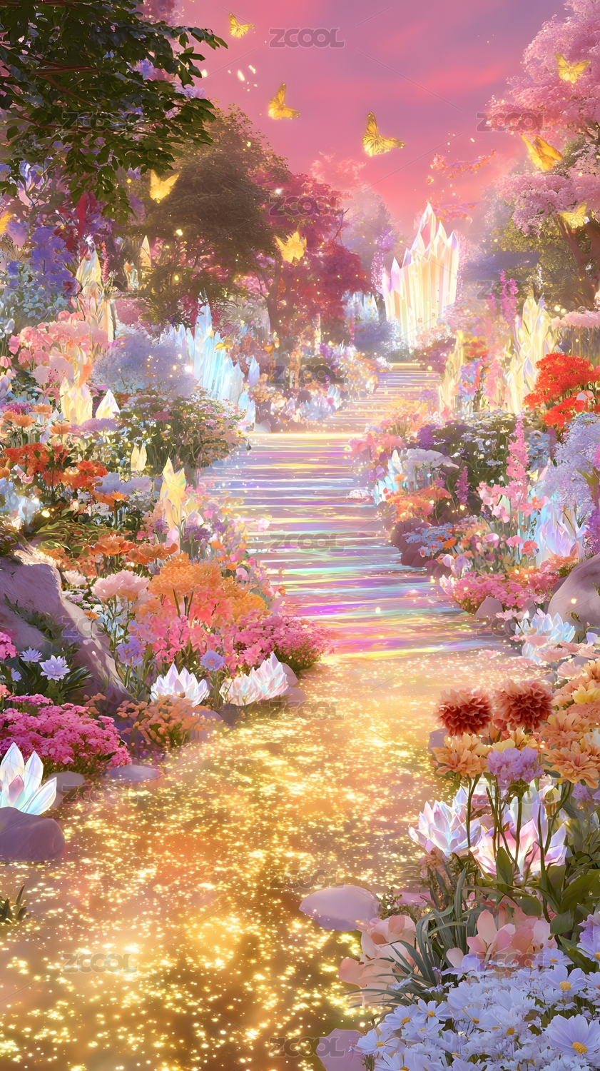 梦幻花园仙境小路粉色光影