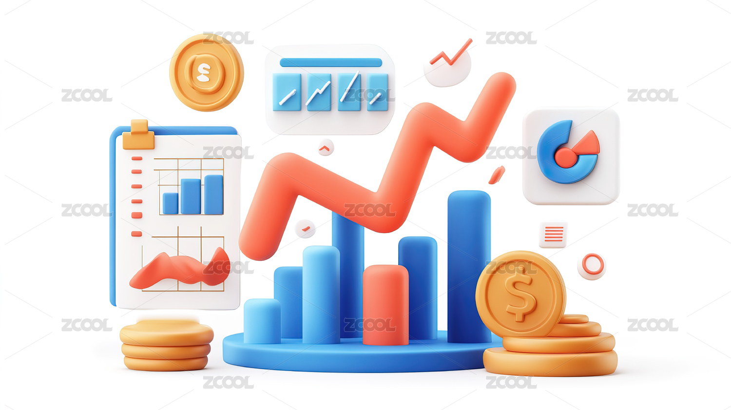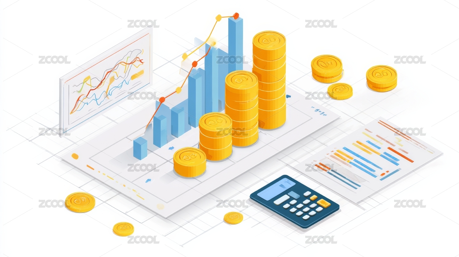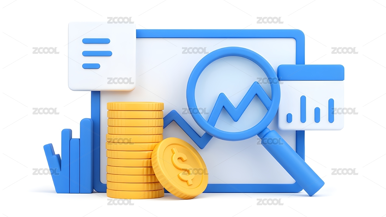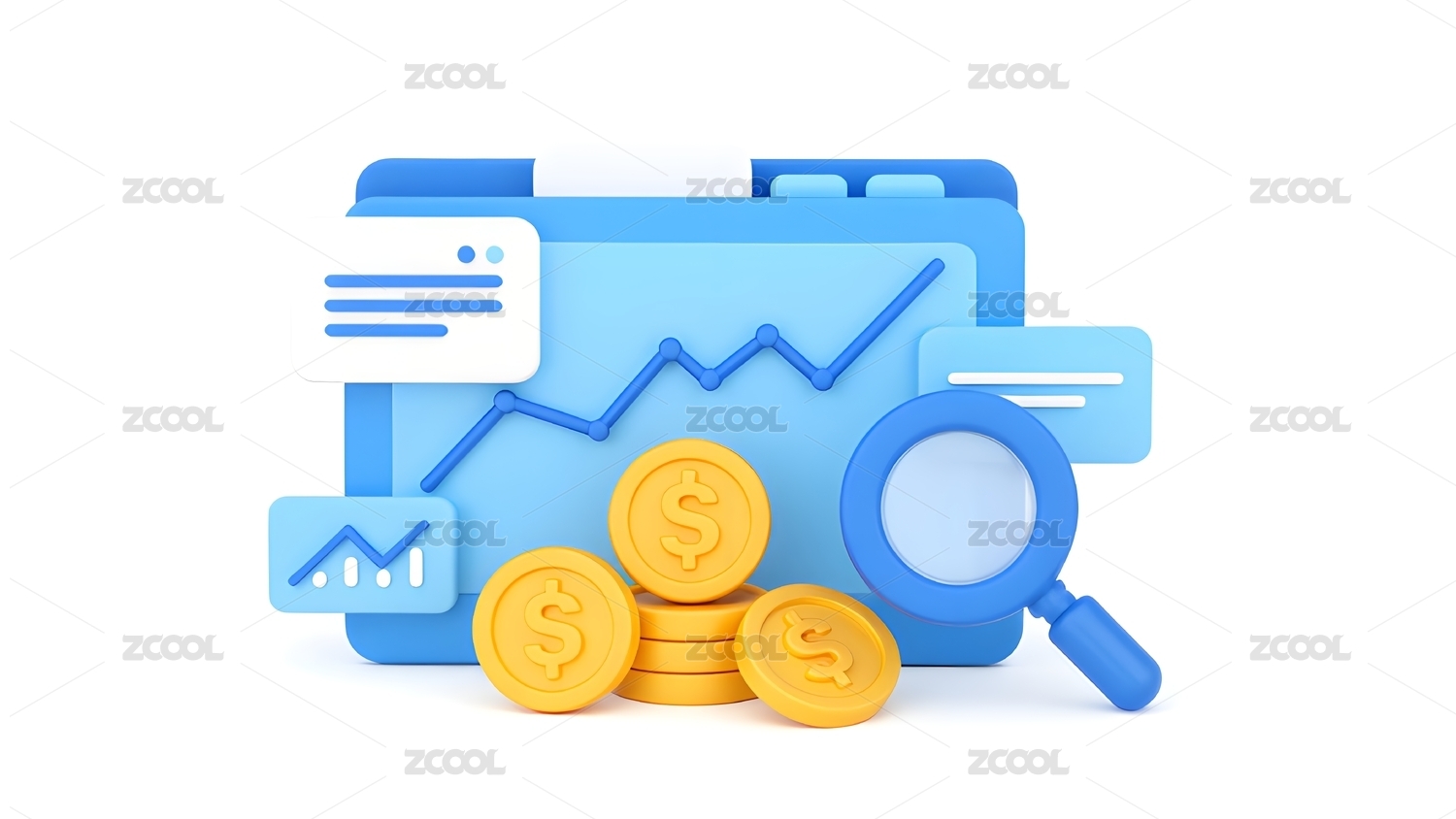 财务增长,数据分析,投资回报,商业智能,金融科技,财富管理,增长趋势,放大镜,金币,图表
