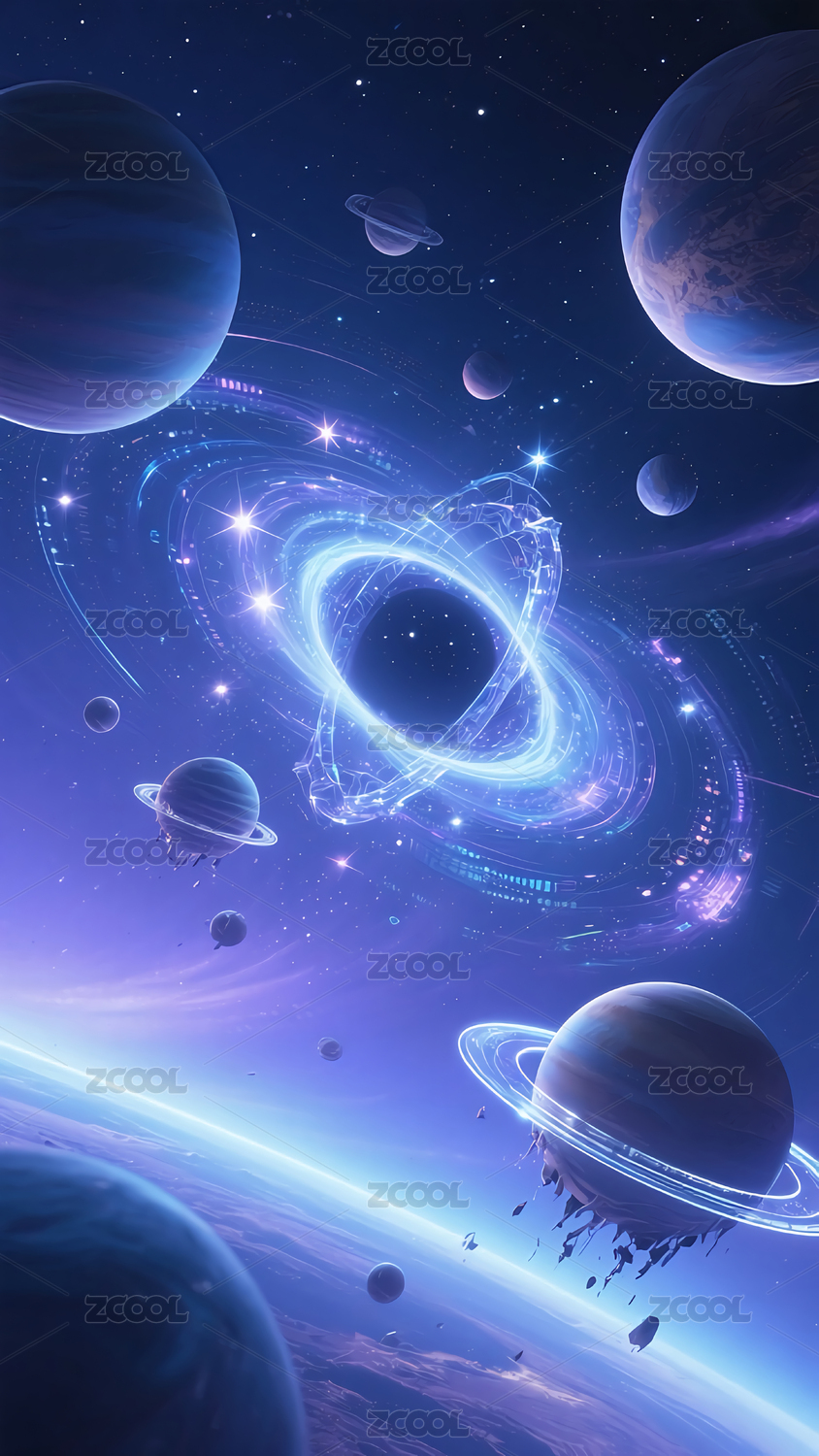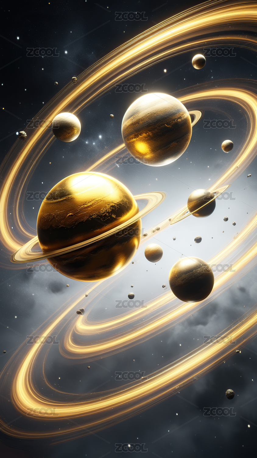 行星,环,太阳,透明,白色,数字,发光,球体,插画,海报