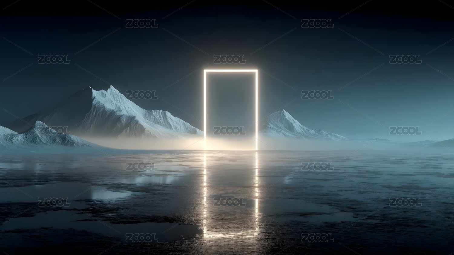 门,框架,发光,山脉,山谷,简约,神秘,时空,传送,风景